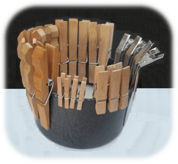 For less than $2 a package, at Wal-Mart, you can get various sizes of clothespins tailored for the many clamping situations you may encounter. Walmart’s number one best seller is: Mainstays Wood Clothes Pins, 2.8″L x .4″HBeige, 50 Count.