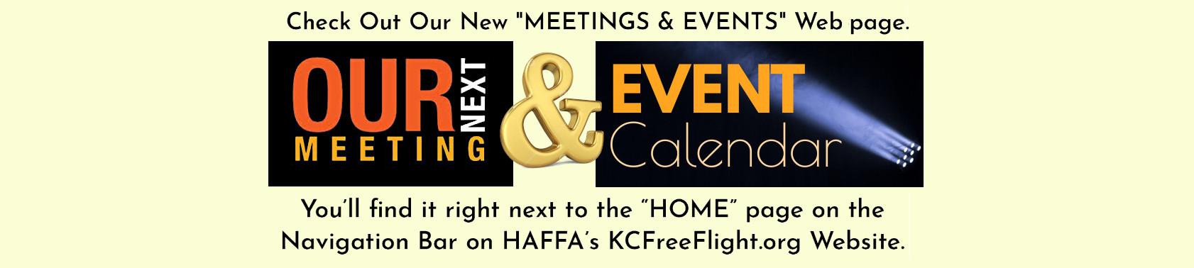 ON the Right side is the “EVENT CALENDAR” and for all intents and purposes shows the current month and two additional future months with activities that are pertinent to the Heart of America Free Flight Association aka HAFFA.