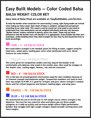 Easy Built Models — Color Coded Balsa — BALSA WEIGHT COLOR KEY Document