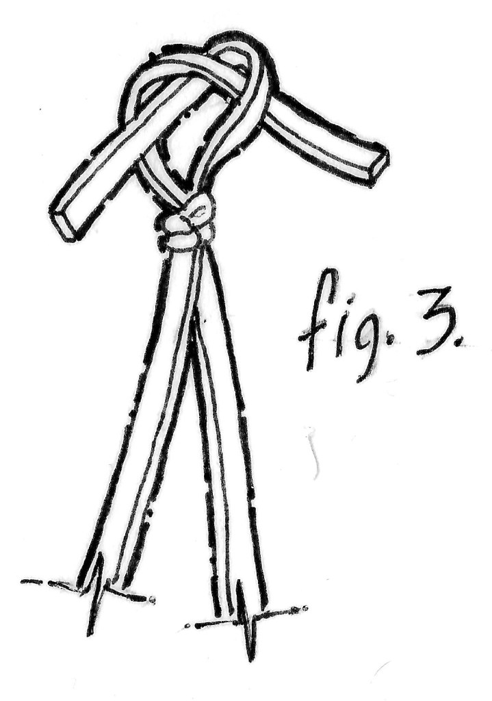 Don explained that the tightness was essential and that because the two knots oppose each other, the knot should not come apart. Cut off the excess rubber as shown in Fig. 4.