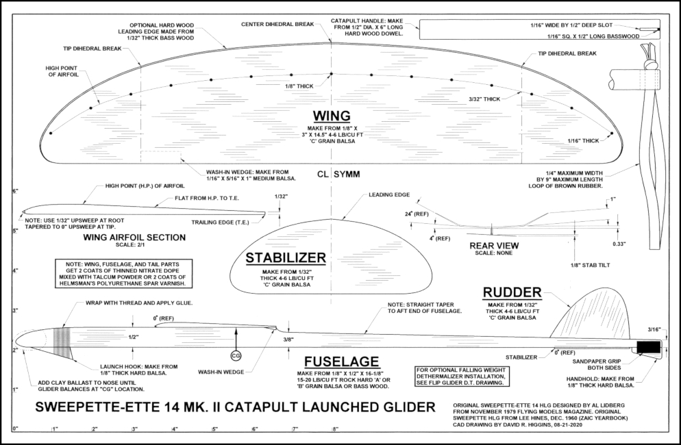 Shown at left is the CAD Drawing of the Sweepette-Ette 14 Mk. II Catapult Launched Glider