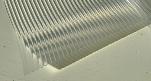 If you look closely at the photo at right, you will notice that the wing is sitting on a piece of glass and on top of what appears to be a translucent piece of plastic with ribs.