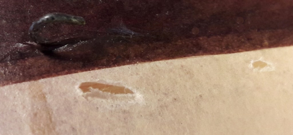 Look closely at the first and last slide of the slide show above. (You can click on the dots under the slide show to navigate to those photos, or just use the left and right arrows.) On the last slide of the show you will notice that there is a bay of tissue just above the brown strip and to the left with the tissue missing. The first slide of the show, however, shows tissue having been added.
