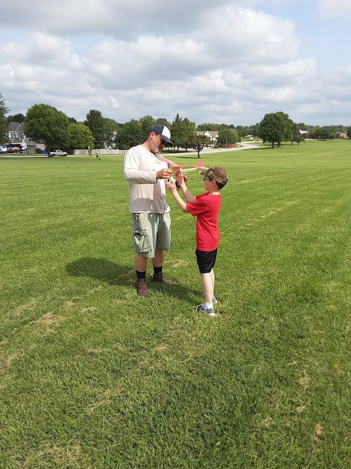 Multiple flights were put up by everyone. Scott and his son Alex (4th grade) drove over from Liberty Missouri up with two very well-built Sky Bunny airplanes. The planes flew basically off the building board. Scott taught his son some trimming guidance and away they went….winding and flying. They made several successful and satisfying flights.