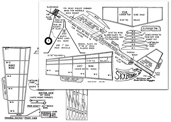 Also on this page is an important original article included as a “supplement” to the plan file. It is also a downloadable pdf file. This article gives important instructions and tips on flying the Sky Bunny so it is a must if you are to construct one. Iven if you elect to get a ready made kit, you should download and read this article. 🙂